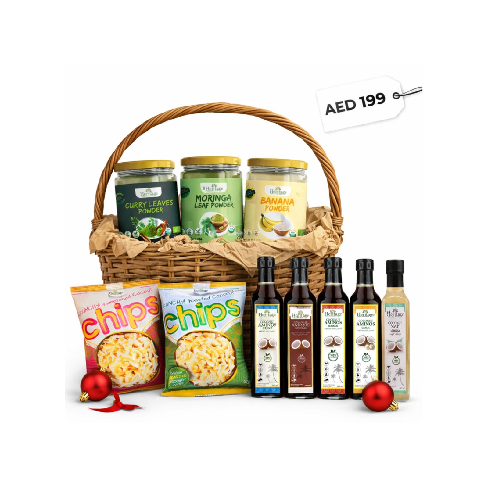 This seasonal bundle brings together the best of taste and nutrition in one convenient pack. Enjoy Banana Powder 300g for natural sweetness, a variety of Coconut Aminos—Garlic, Glaze, Regular, and Teriyaki (250ml each) for versatile, soy-free cooking, and Coconut Sap Vinegar 250ml for a light, tangy flavor. Boost your dishes with Curry Leaves Powder 200g and Moringa Powder 200g, and add a tropical crunch with Sweetened and Toasted Coconut Chips (50g each). Perfect for smoothies, baking, cooking, or snacking, this bundle combines flavor, nutrition, and convenience in every ingredient.